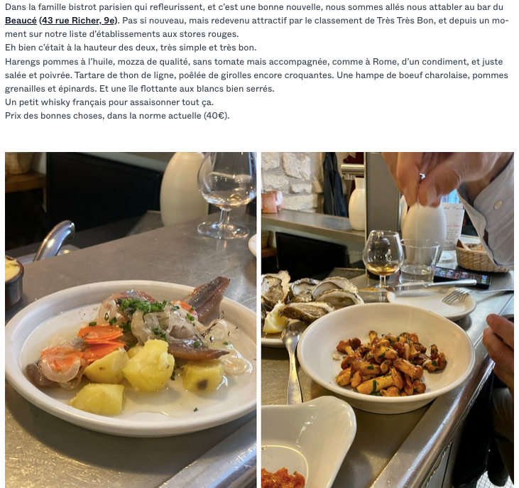 Ancien chef du restaurant QueDuBon (Paris 19e), Marius Bénard ouvre Le Beaucé pour proposer à nouveau une cuisine simple, avec des produits de qualité, à accompagner d'une sélection de vins naturels.